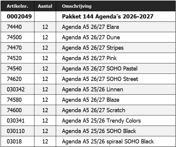 Pakket Agenda's 2026/2027 - 144 stuks