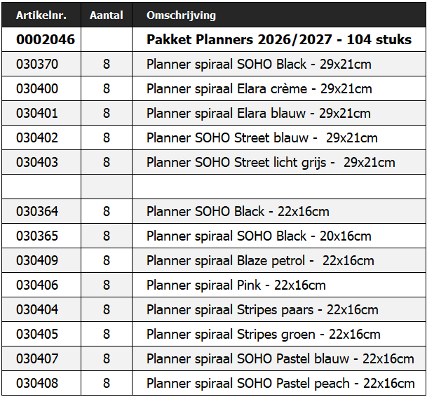 Pakket Planners 2026/2027 - 104 stuks