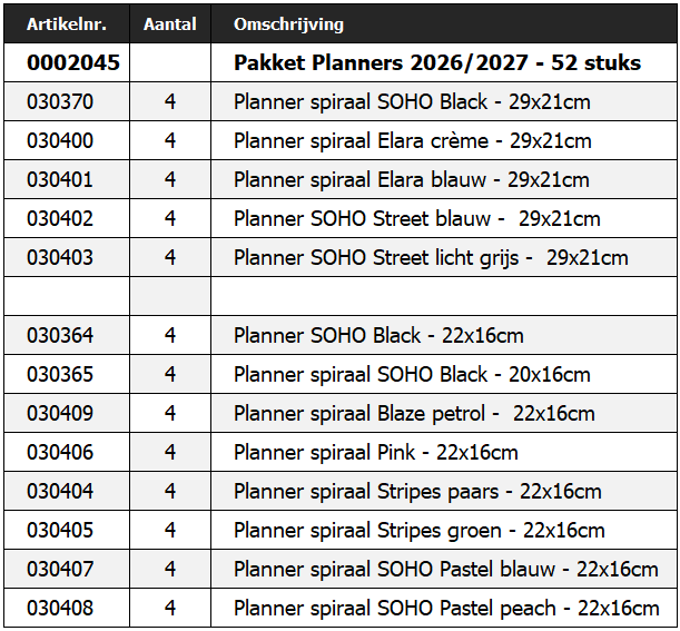 Pakket Planners 2026/2027 - 52 stuks