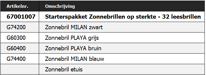 Starterspakket Zonnebrillen op sterkte - 32 leesbrillen